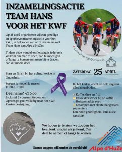 Op 25 april organiseert Team Hans een inzamelingsactie voor KWF, in het kader van hun deelname aan Alpe d’HuZes.